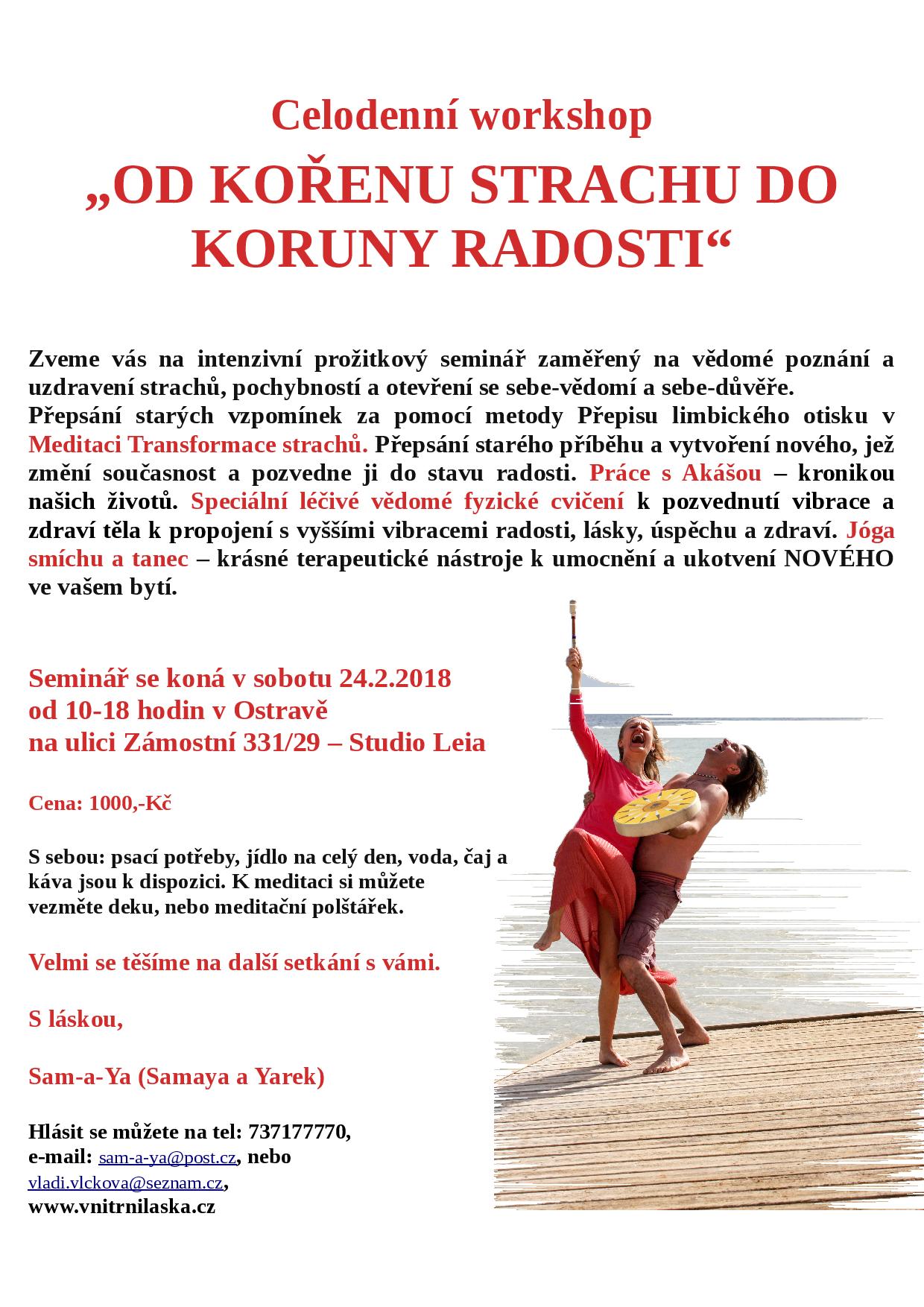 24.2.2018 10-18h ve Studiu Leia v Ostravě OD KOŘENU STRACHU DO KORUNY RADOSTI